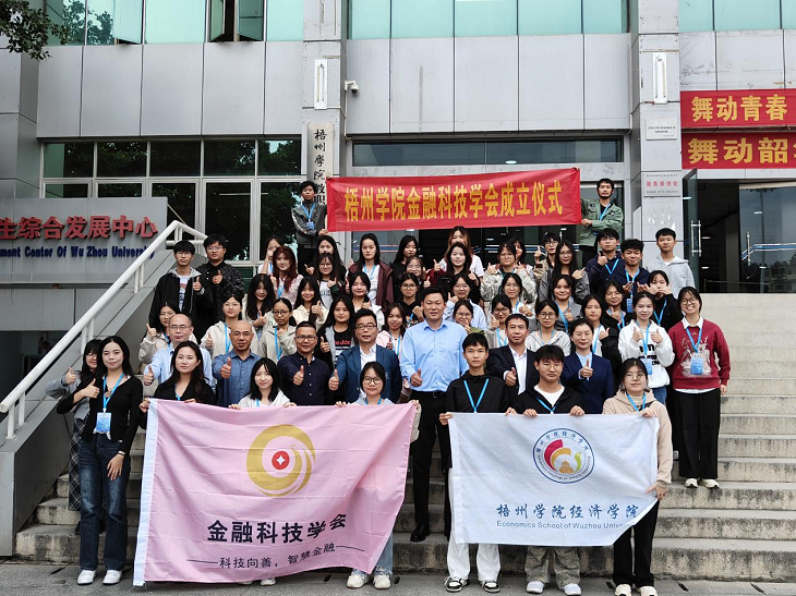 11月20日,我院与桂林银行梧州分行在体育馆邑谷中心联合举办“金融科技学会”成立仪式暨“金融科技大讲堂”首场讲座活动。桂林银行梧州分行行长杜忠良、人力资源部总经理李翠林,学院党委书记黄焕克、院长杨诚、党委副书记卢桂吉,以及金融科技、金融工程专业教研室师生160多人参加此次活动。